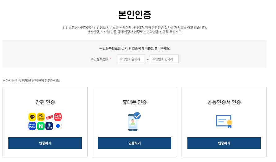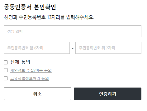 간편인증, 문자인증, 공동인증서로 본인확인을 합니다